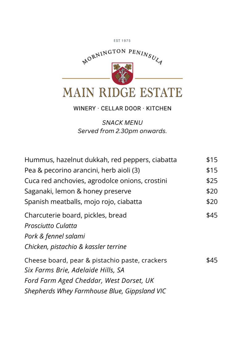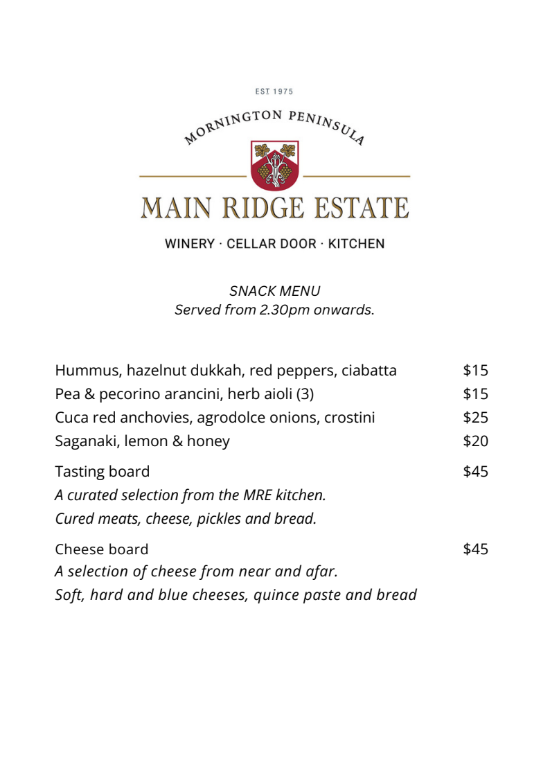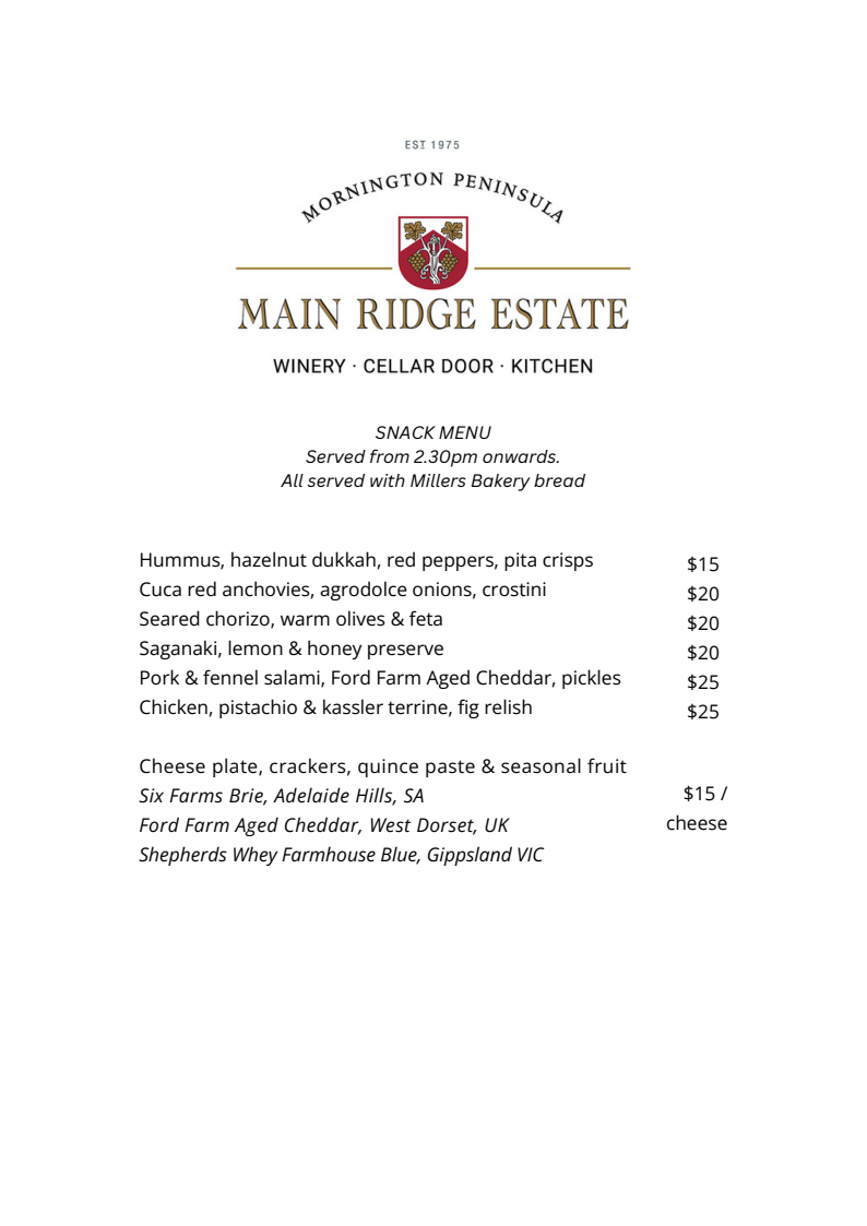 Please note that menus may vary due to availability of seasonal produce.